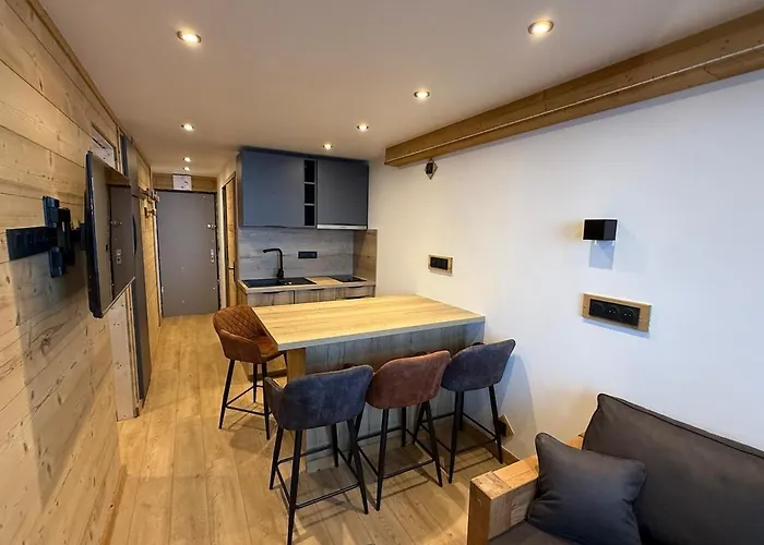 - ❓Existe uma cozinha disponível em Val Thorens Lauzieres 4 People apartamento para uso dos hóspedes?Sim, Val Thorens Lauzieres 4 People apartamento está equipado com cozinha e oferece chaleira elétrica, refrigerador e forno.